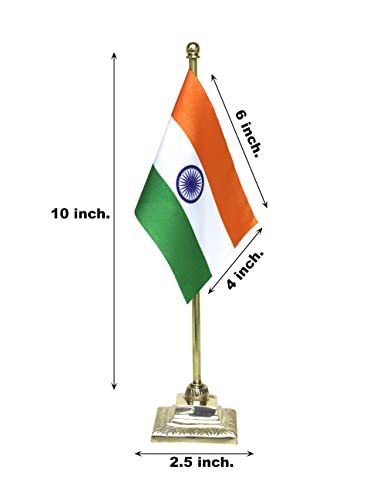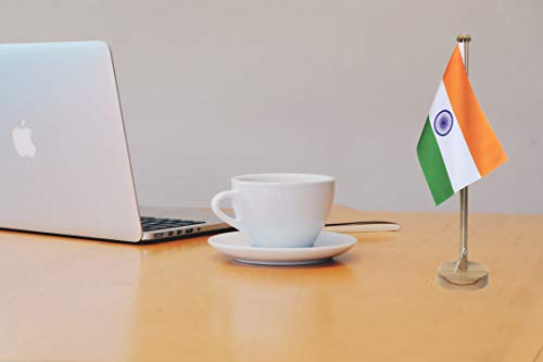 FlagSource Indian Miniature Table Flag with an Elegant Square Brass Base