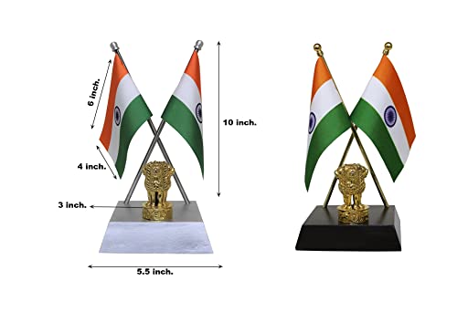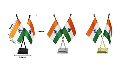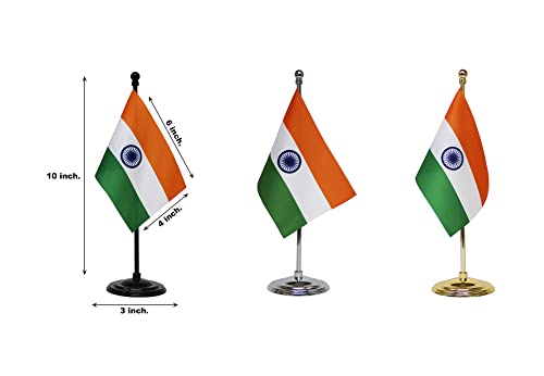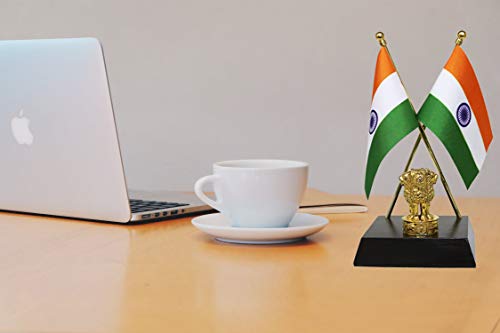 FlagSource Indian National Table Flags with A Shiny 18K Gold-Plated Brass Emblem of India (Ashok Stambha) and Aluminium Base