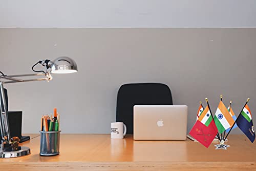 FlagSource Indian Flag + Indian Armed Forces (Indian Army, Indian Air Force, Indian Navy, Indian Coast Guard) Group Table Flags with A Round Stepped Base