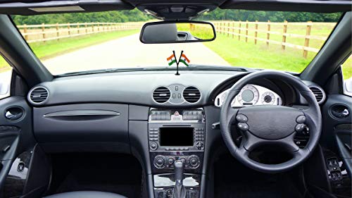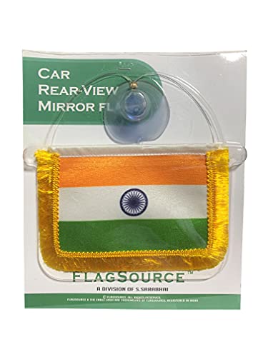 FlagSource Indian Miniature Rear-View Mirror Dangling Car Flags with A Vacuum Suction Base Saffron, White, Green, Navy Blue and Gold Border